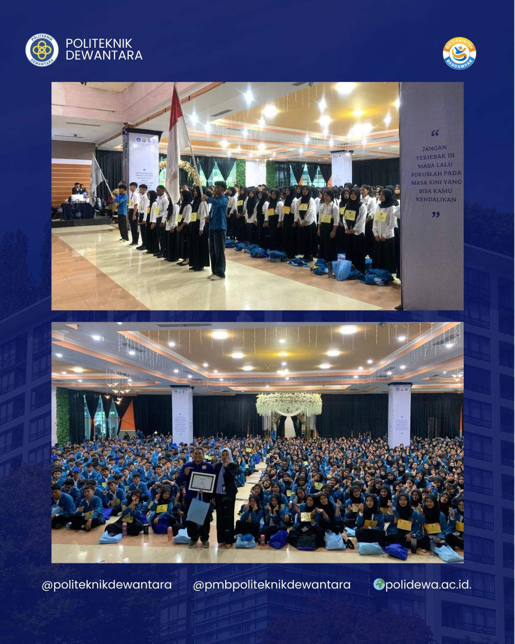 “Terima kasih atas kepercayaan orang tua mahasiswa yang telah menitipkan putra-putrinya untuk menempuh pendidikan vokasi di Polidewa. Kami akan terus mengembangkan kurikulum dan jejaring industri agar lulusan Polidewa siap bersaing, baik di tingkat nasional maupun internasional,” tegasnya.