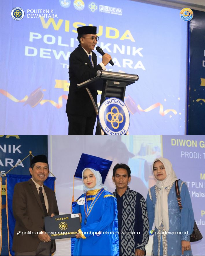 Direktur Politeknik Dewantara, Dr. Suaedi, M.Si., dalam sambutannya menyampaikan rasa syukur atas terselenggaranya wisuda kedua tersebut. Ia menekankan bahwa keberhasilan para lulusan tidak lepas dari doa orang tua, kerja keras dosen, dan dukungan berbagai pihak.