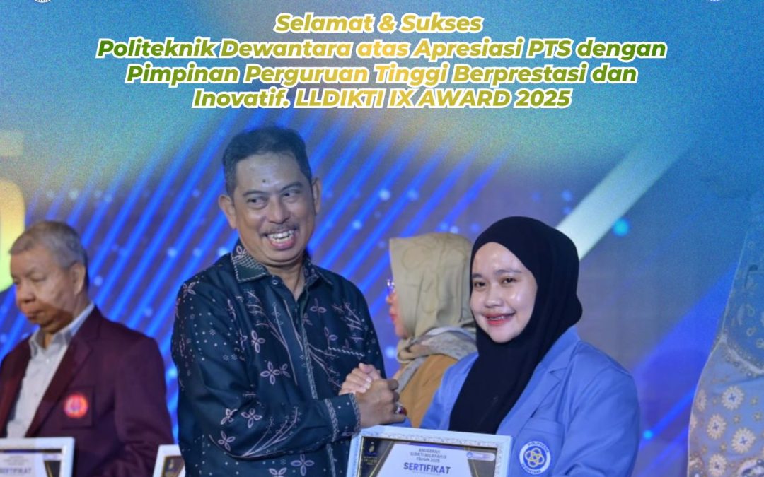 POLIDEWA – Politeknik Dewantara (Polidewa) kembali menorehkan prestasi membanggakan dengan meraih Sertifikat Apresiasi LLDIKTI Wilayah IX Award Tahun 2025 sebagai Perguruan Tinggi Swasta (PTS) dengan Pimpinan Perguruan Tinggi Berprestasi dan Inovatif.